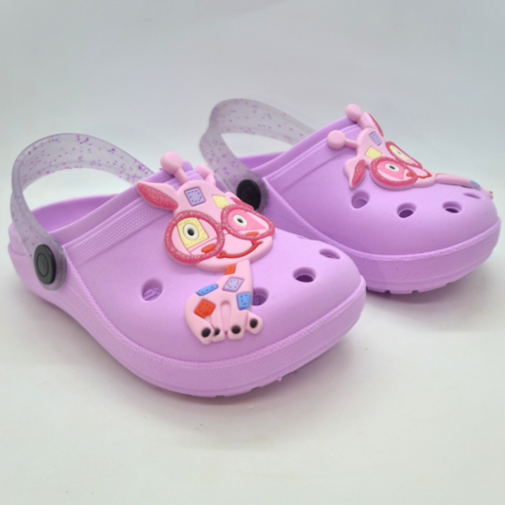 Babuche infantil feminino com design divertido e confortável, ideal para o dia a dia das crianças. Pode ser usado como chinelo ou sandália graças à alça 2 em 1, que se ajusta conforme a necessidade.