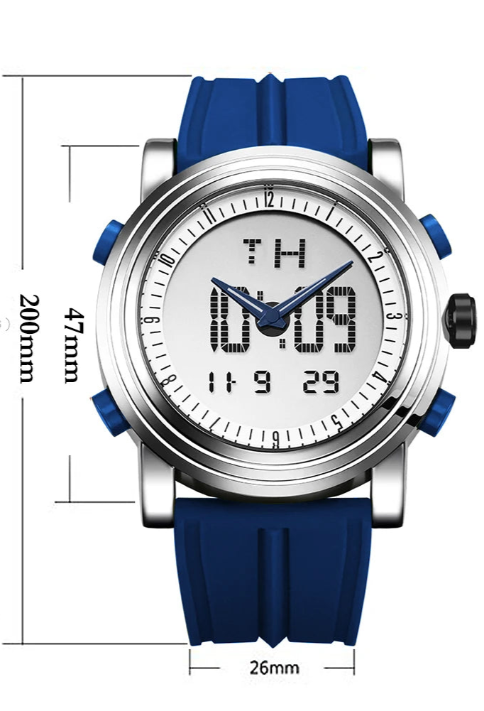 - Característica: Alarme, Resistente à água, Luminoso, Cronógrafo, Resistente a choques, Cronômetro, Calendário completo, Natação, Data automática, Display LED