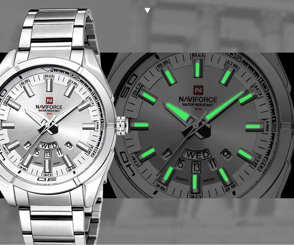 Característica: Resistente à Água 30m, Exibição de Data, Ponteiros Luminosos,